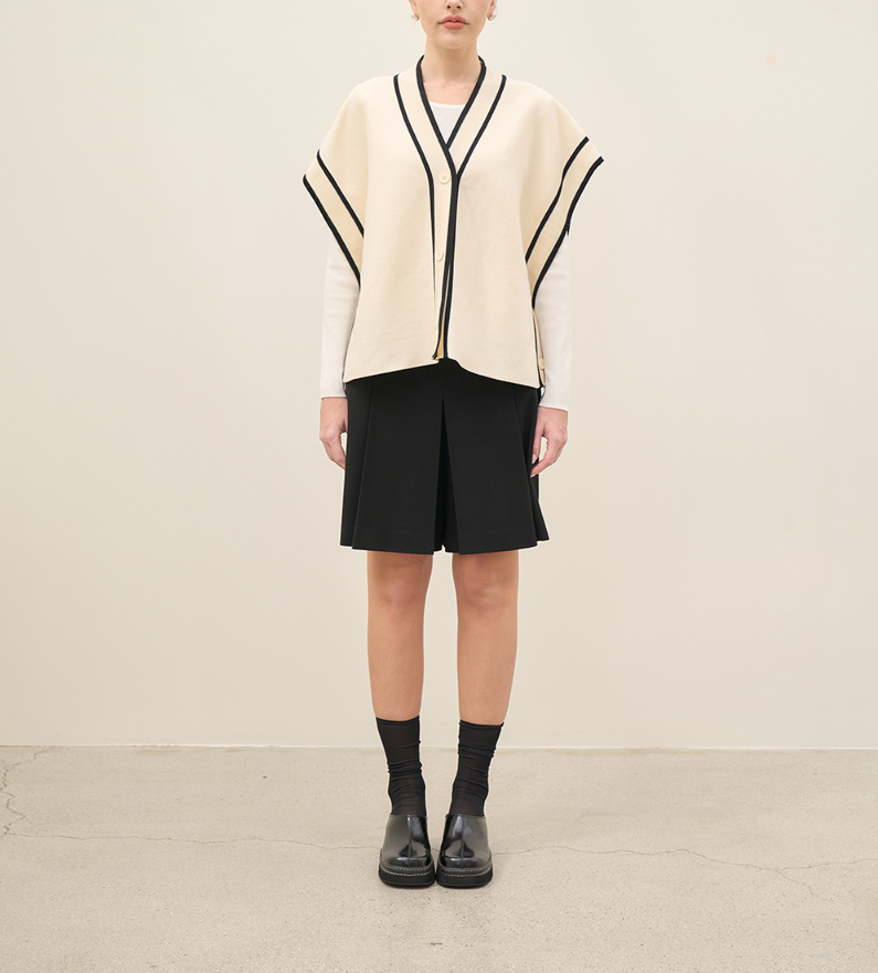 루즈하게 떨어지는 핏으로 케이프를 연상시키는 디자인
