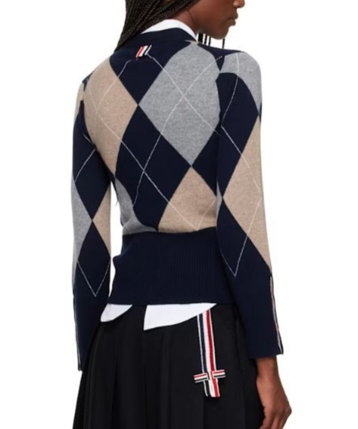 <모델명> 네이비 아가일 패턴 캐시미어 브이넥 가디건
