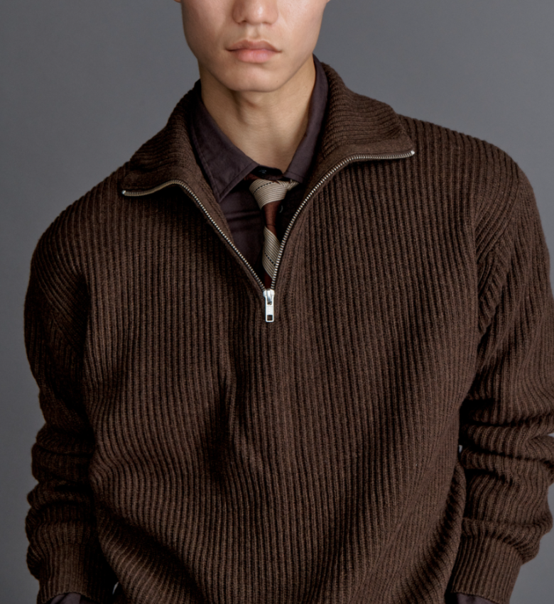 <모델명> 하프집업 니트 올리브브라운3월6일 윤선우 갈색 지퍼 니트 스웨터 옷 의상 코디 패션