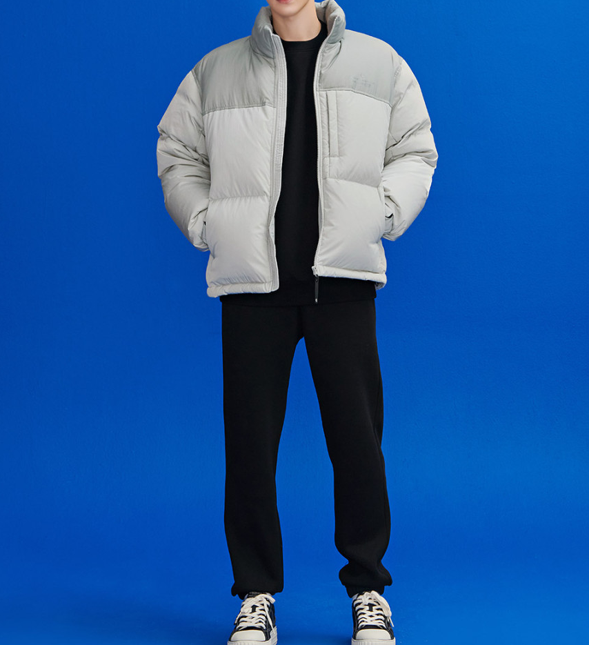 <모델명> 컬러 블록 푸퍼 다운 숏패딩 점퍼 BFRK4722 라이트그레이