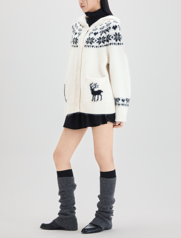 <모델명> 스노우 패턴 후드 가디건 MIWCKG30QS 아이보리3월8일 동숙이 후드 니트 가디건 옷 의상 코디 패션