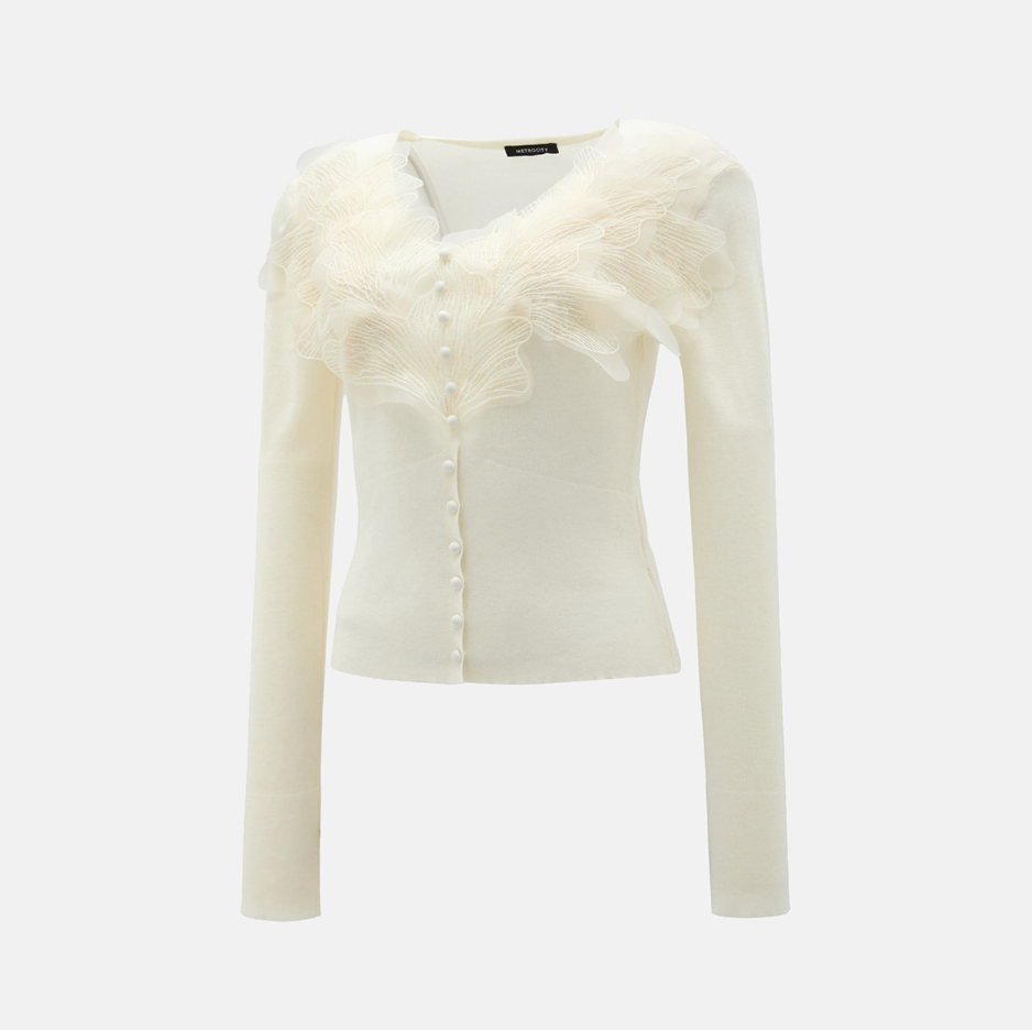 레이스 디테일과 앞 중심의 버튼이 포인트인