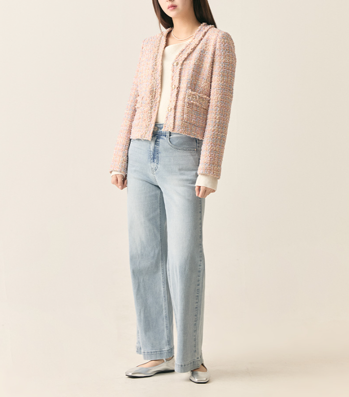 <모델명> 브이넥 트위드 자켓_RMJKF23S13 핑크3월1일 솔이엄마 언경이 트위드재킷 외투 아우터 옷 의상 코디 패션