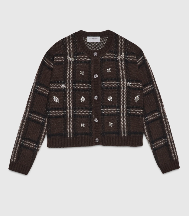 <모델명> SCOTTISH JACQUARD CARDIGAN WITH JEWEL EMBROIDERY