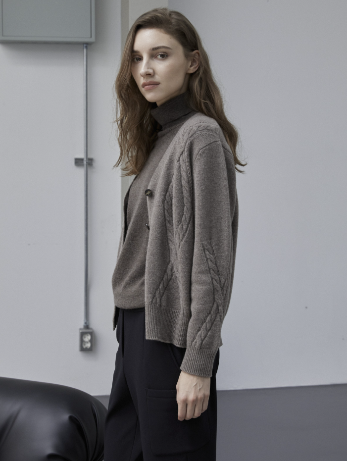 <모델명> 캐시혼방 조직 가디건_MDEBC5W9351 브라운3월14일 유호정 카디건 옷 의상 코디 패션