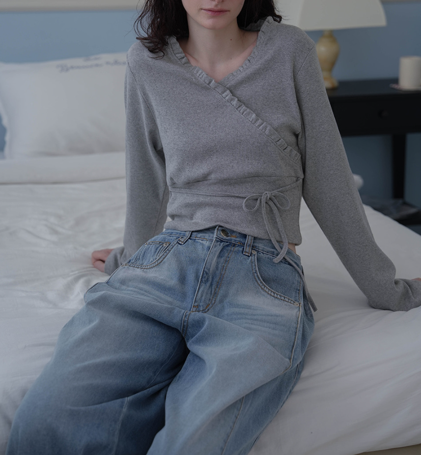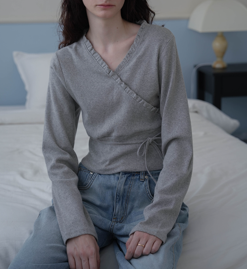 <모델명> Wrap Frill Long Sleeve [Melange]