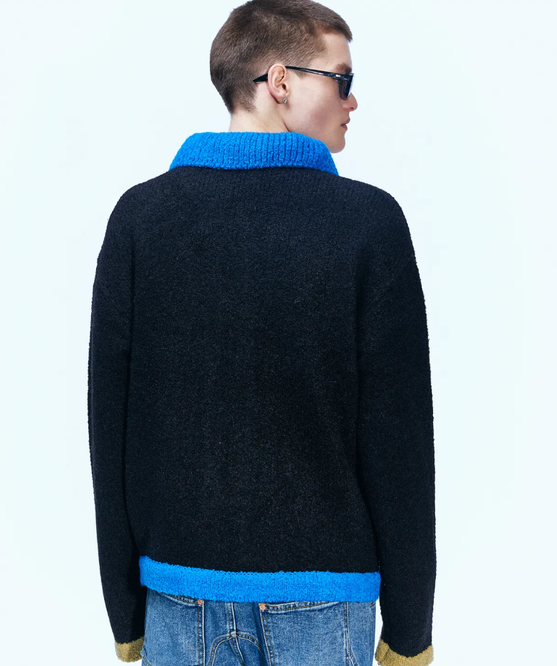 앤더슨벨 YKK 2way Zipper3월21일 신동엽 블루 카라 배색 집업 니트 가디건 옷 의상 코디 패션