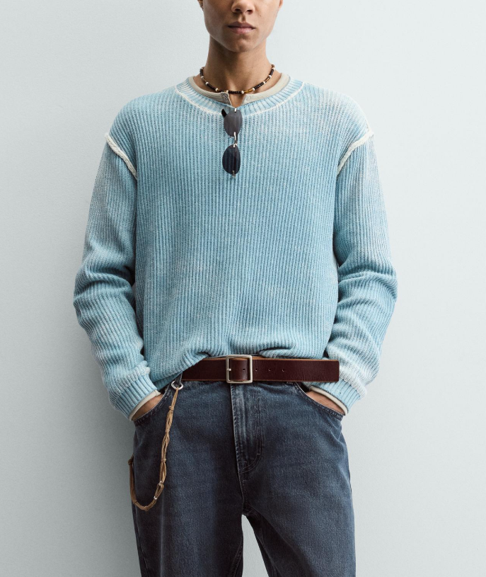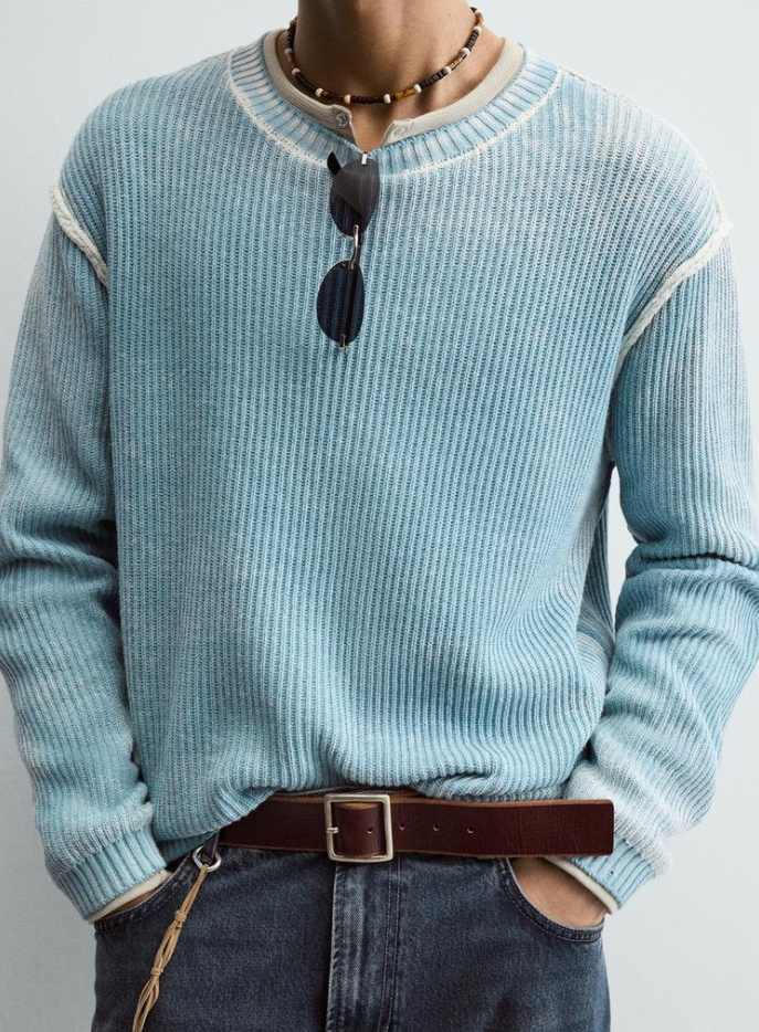 면 소재 우븐 니트 릴렉스핏 스웨터.