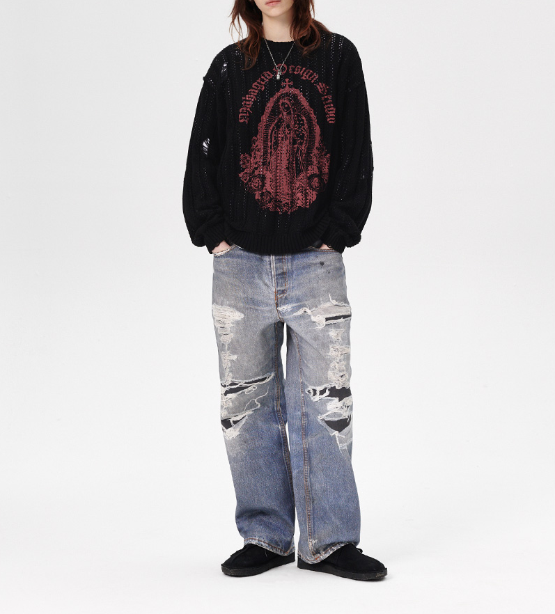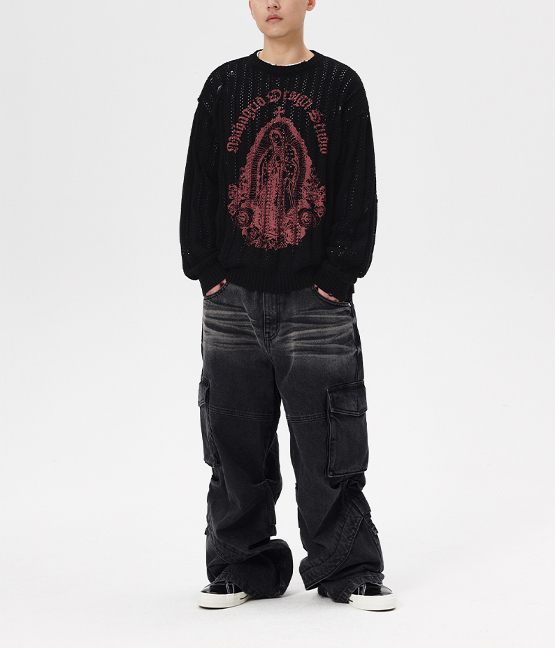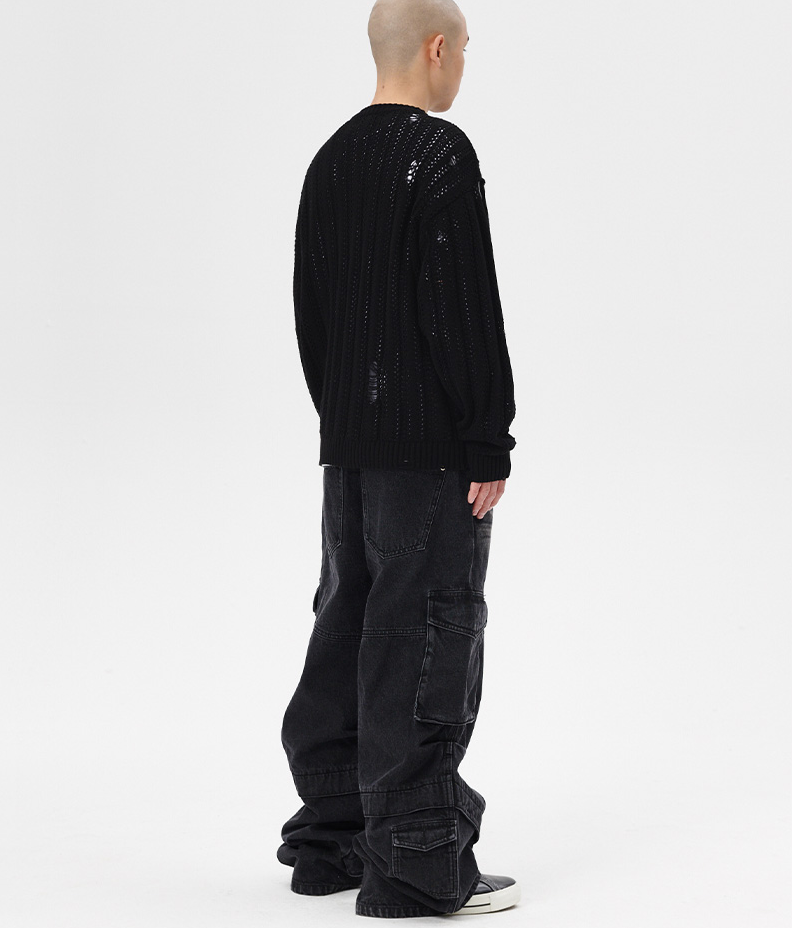 유선호 <1박2일 시즌4> 320회 마하그리드 MAHAGRID 블랙 메쉬 패턴 니트 스웨터