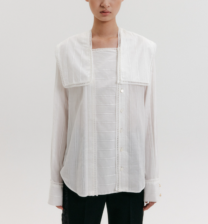 - 제품명: Big Collar Lace Blouse - White