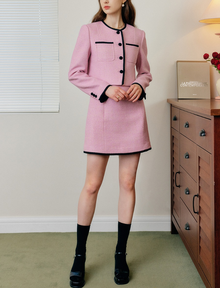 <모델명> MINA COMBI TWEED SET UP 핑크