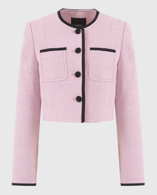 미니멀한 디자인의 크롭 트위드 자켓입니다.